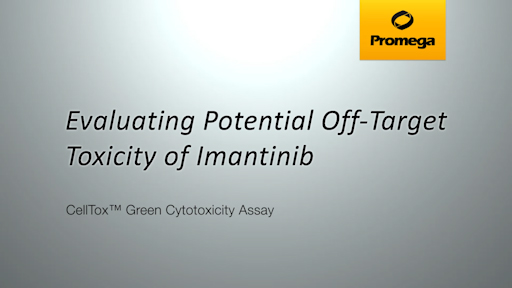 K562 (leukemic) cells were treated with Imantinib (a kinase inhibitor). The cell response was evaluated over the course of 48 hours using the CellTox™ Green Cytotoxicity Assay multiplexed with the RealTime-Glo™ MT Cell Viability Assay. RealTime-Glo determines (in real time) the number of viable cells in culture by measuring the reducing potential of cells and thus metabolism (MT). At the 72-hour time point CellTiter-Glo® Cell Viability Assay Reagent was added to determine the number of viable cells by quantifying ATP.