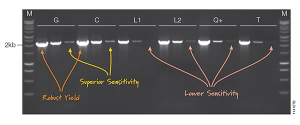 GoTaq® G2 Hot Start Master Mix displays superior sensitivity and robust yield.